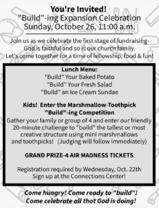 Join Julie Haugom to study and deepen your understanding of the Bible’s core teachings in Genesis 1-11. This study provides a vital foundation, examining significant events such as creation, the fall of man, the great flood, and the tower of Babel. We will meet the first and third Thursdays of the month, 7-9 PM October 2—December 18, in the Multipurpose Room. Bring your Bible and join us for fellowship. Sign up at the table in the Lobby.